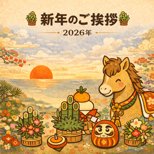 新年明けましておめでとうございます。旧年中は格別のご愛顧を賜り、誠にありがとうございました。 皆様に支えられ、無事に新しい年を迎えることができましたこと、心より御礼申し上げます。本年も、お客様のご要望に一つひとつ丁寧に向き合い、 よりご満足いただける製品・サービスの提供に努めてまいります。 小さなことでもお気...